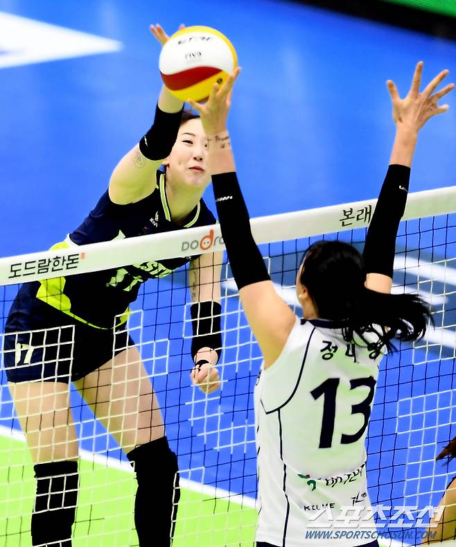 '2020-2021 V리그' 여자부 현대건설과 한국도로공사의 경기가 16일 수원실내체육관에서 열렸다. 현대건설 고예림이 블로킹 벽을 피해 공격을 시도하고 있다. 수원=박재만 기자 pjm@sportschosun.com/2021.01.16/