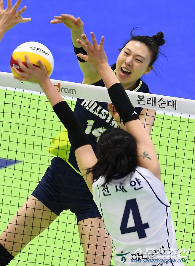 '2020-2021 V리그' 여자부 현대건설과 한국도로공사의 경기가 16일 수원실내체육관에서 열렸다. 현대건설 양효진이 블로킹 벽을 피해 공격을 시도하고 있다. 수원=박재만 기자 pjm@sportschosun.com/2021.01.16/