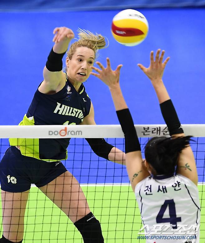 '2020-2021 V리그' 여자부 현대건설과 한국도로공사의 경기가 16일 수원실내체육관에서 열렸다. 현대건설 루소가 블로킹 벽을 피해 공격을 시도하고 있다. 수원=박재만 기자 pjm@sportschosun.com/2021.01.16/
