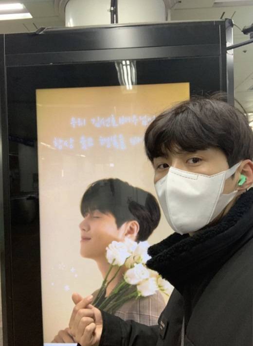 [마이데일리 = 양유진 기자] 배우 김선호가 팬클럽이 선물한 지하철 광고를 인증했다.