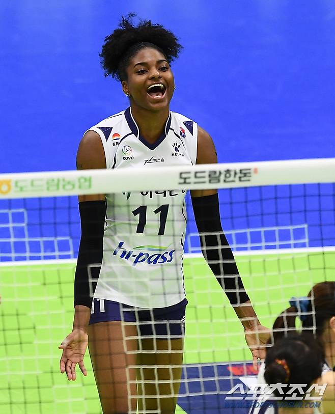 '2020-2021 V리그' 여자부 현대건설과 한국도로공사의 경기가 16일 수원실내체육관에서 열렸다. 한국도로공사 켈시가 득점 후 환호하고 있다. 수원=박재만 기자 pjm@sportschosun.com/2021.01.16/