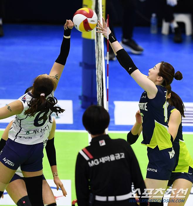 '2020-2021 V리그' 여자부 현대건설과 한국도로공사의 경기가 16일 수원실내체육관에서 열렸다. 현대건설 고예림이 블로킹 벽을 피해 공격을 시도하고 있다. 수원=박재만 기자 pjm@sportschosun.com/2021.01.16/