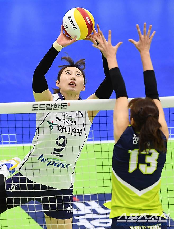'2020-2021 V리그' 여자부 현대건설과 한국도로공사의 경기가 16일 수원실내체육관에서 열렸다. 한국도로공사 박정아가 블로킹 벽을 피해 공격을 시도하고 있다. 수원=박재만 기자 pjm@sportschosun.com/2021.01.16/