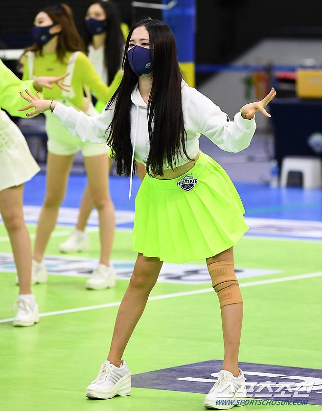 '2020-2021 V리그' 여자부 현대건설과 한국도로공사의 경기가 16일 수원실내체육관에서 열렸다. 현대건설 치어리더가 멋진 공연을 선보이고 있다. 수원=박재만 기자 pjm@sportschosun.com/2021.01.16/