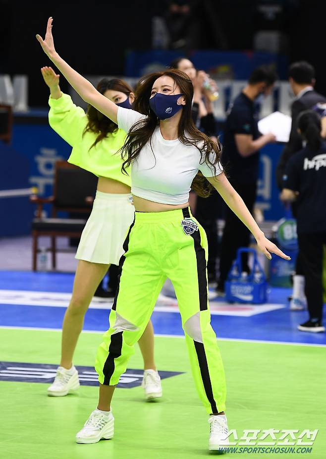 '2020-2021 V리그' 여자부 현대건설과 한국도로공사의 경기가 16일 수원실내체육관에서 열렸다. 현대건설 치어리더가 멋진 공연을 선보이고 있다. 수원=박재만 기자 pjm@sportschosun.com/2021.01.16/