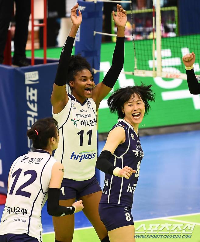 '2020-2021 V리그' 여자부 현대건설과 한국도로공사의 경기가 16일 수원실내체육관에서 열렸다. 경기에서 승리한 한국도로공사 선수들이 기뻐하고 있다. 수원=박재만 기자 pjm@sportschosun.com/2021.01.16/