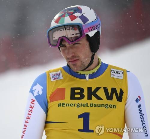 epa08940946 Daniel Yule of Switzerland reacts after missing a gate during the first run of the Men's Slalom at the FIS Alpine Skiing World Cup in Flachau, Austria, 16 January 20201. EPA/CHRISTIAN BRUNA