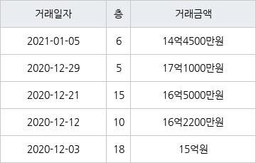 국토교통부 실거래가 공개시스템에 따르면 지난 2020년 12월 29일 서울특별시 송파구 문정동 문정래미안 5층 전용면적 120㎡형이 17억1000만원에 거래됐다. 해당 아파트의 동일 면적형 기준으로 역대 최고가격이다. 직전 최고가 기록은 지난 2020년 12월 21일 16억5000만원에 거래된 물건이다.