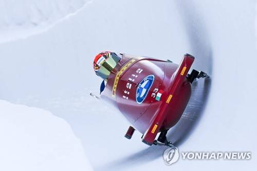epa08941101 Patrick Baumgartner and Costantino Ughi of Italy during the 2-man Bobsleigh World Cup in St. Moritz, Switzerland, 16 January 2021. EPA/GIAN EHRENZELLER
