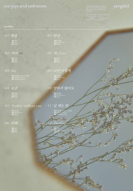 지난 15일, 브랜뉴뮤직은 공식 SNS 채널들을 통해 양다일의 두 번째 정규앨범 'our joys and sadnesses'의 트랙리스트 이미지를 공개했다.