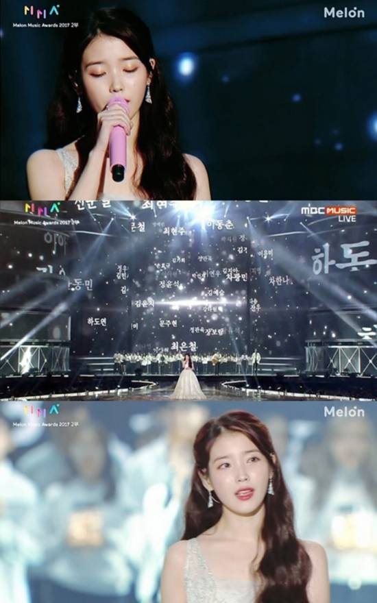 지난 2017년 멜론 뮤직 어워드에 참여한 아이유는 '올해의 TOP10', '송라이터상'을 비롯해 대상에 해당하는 '올해의 앨범상'을 수상했다.