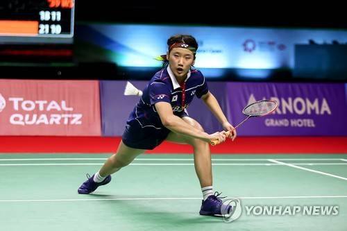 epa08941173 A handout photo made available by the Badminton Association of Thailand of South Korea's An Se-young in action against Carolina Marin of Spain during their women's singles semi final match at the BWF Yonex Thailand Open badminton tournament in Bangkok, Thailand, 16 January 2021. EPA/BADMINTON ASSOCIATION OF THAILAN HANDOUT EDITORIAL USE ONLY/NO SALES