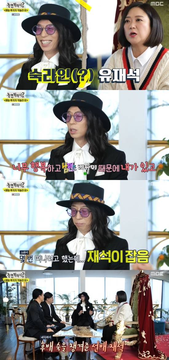 유재석은 "숙이가 방송이 없어서 여행사를 하려고 한 적이 있다"라며 고백했고, 김숙은 "(유재석이) 몇 번을 잡아줬다"라며 고마움을 전했다.