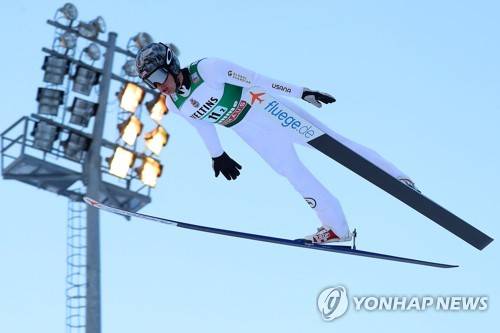 epa08941222 Jasper Good of the USA in action during the Ski Jumping portion of the men's Team Sprint NH/2x7.5km competition at the FIS Nordic Combined World Cup in Val di Fiemme, Italy, 16 January 2021. EPA/ANDREA SOLERO