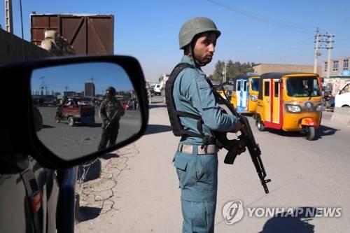 epa08941240 Afghan security officials stand guard on a road side check point in Herat, Afghanistan, 16 January 2021. According to reports, At least Twelve members of Afghan Local Police were killed in an attack by Taliban 'infiltrators' in their outpost in Ghorian district of Herat province on the night of 15 January 2021. EPA/JALIL REZAYEE