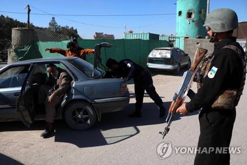 epa08941242 Afghan security officials stand guard on a road side check point in Herat, Afghanistan, 16 January 2021. According to reports, At least Twelve members of Afghan Local Police were killed in an attack by Taliban 'infiltrators' in their outpost in Ghorian district of Herat province on the night of 15 January 2021. EPA/JALIL REZAYEE