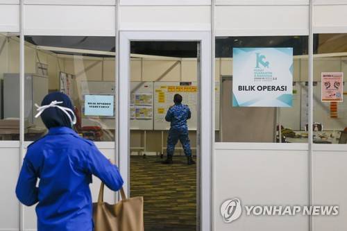epa08941275 An Malaysian Civil Defence Force officer is seen in an operation centre at the Covid-19 treatment and quarantine centre at the Malaysia Agro Exposition Park (MAEPS) Serdang, outside Kuala Lumpur, Malaysia, 16 January 2021. The Covid-19 treatment and quarantine centre has been upgraded to accommodate up to 10,000 patients starting on 18 January 2021. EPA/FAZRY ISMAIL