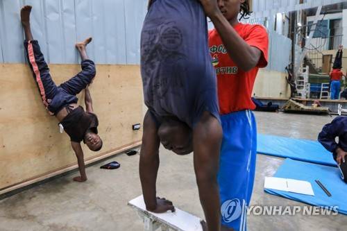 epa08941287 Kenyan acrobatic members of the Mighty Jambo Circus Academy take part in their training routine at the academy in Nairobi, Kenya, 13 January 2021 (issued 16 January 2021). The Kenyan circus academy resumed back to their daily exercise routine after months of closure since the coronavirus pandemic started. The academy that depends on performances in Europe, especially Spain, has been forced to turn to local performances. With the launch of COVID-19 vaccinations across Europe during the second wave of the pandemic they hope to be able to go back to normal. EPA/Daniel Irungu ATTENTION: This Image is part of a PHOTO SET