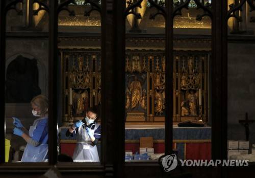 The Pfizer-BioNTech coronavirus vaccine is prepared by health workers at Salisbury Cathedral, in Salisbury, England, Saturday, Jan. 16, 2021, before being administered to members of the public. The historic site is acting as a venue for the Sarum South Primary Care Network COVID-19 Local Vaccination Service. (Steve Parsons/PA via AP) UNITED KINGDOM OUT NO SALES NO ARCHIVE PHOTOGRAPH CANNOT BE STORED OR USED FOR MORE THAN 14 DAYS AFTER THE DAY OF TRANSMISSION