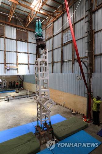 epa08941282 A Kenyan acrobatic member of the Mighty Jambo Circus Academy performs a stunt during their training routine at the academy in Nairobi, Kenya, 13 January 2021 (issued 16 January 2021). The Kenyan circus academy resumed back to their daily exercise routine after months of closure since the coronavirus pandemic started. The academy that depends on performances in Europe, especially Spain, has been forced to turn to local performances. With the launch of COVID-19 vaccinations across Europe during the second wave of the pandemic they hope to be able to go back to normal. EPA/Daniel Irungu ATTENTION: This Image is part of a PHOTO SET