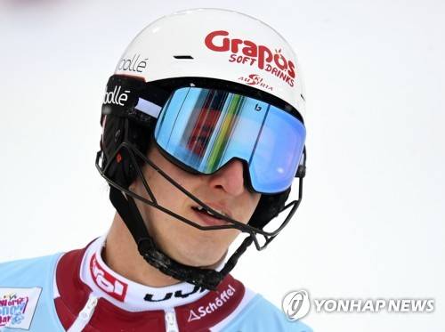 epa08941330 Adrian Pertl of Austria reacts during the second run of the men's Slalom race at the FIS Alpine Skiing World Cup in Flachau, Austria, 16 January 2021. EPA/CHRISTIAN BRUNA