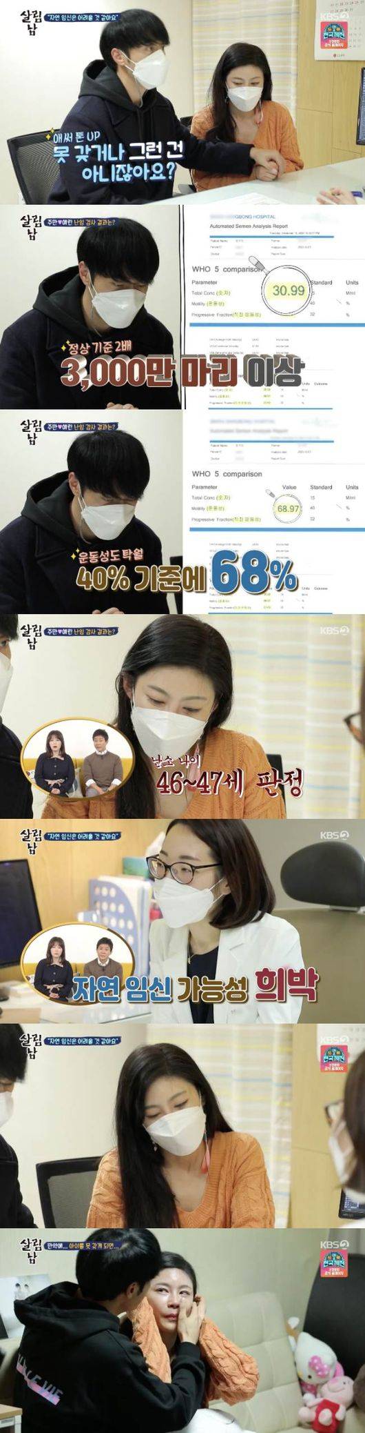'살림남2' 윤주만이 정자 왕에 등극했고, 아내 김예린은 난소 나이 46~47세로 충격받았다.