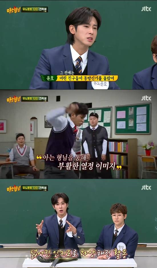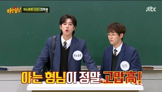 16일 방송된 JTBC ‘아는 형님’에는 유노윤호와 딘딘이 전학생으로 등장했다.