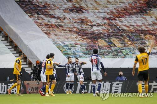 epa08941432 Matheus Pereira (C-L) of West Bromwich celebrates after scoring a goal during the English Premier League soccer match between Wolverhampton Wanderers and West Bromwich Albion in Wolverhampton, Britain, 16 January 2021 EPA/Adrian Dennis / POOL EDITORIAL USE ONLY. No use with unauthorized audio, video, data, fixture lists, club/league logos or 'live' services. Online in-match use limited to 120 images, no video emulation. No use in betting, games or single club/league/player publications.