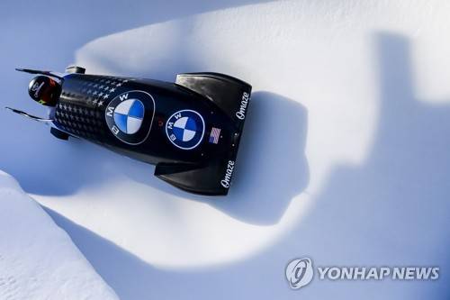 epa08941494 Kaillie Humphries of the USA in action during the women's Monobob World Series event in St. Moritz, Switzerland, 16 January 2021. EPA/GIAN EHRENZELLER