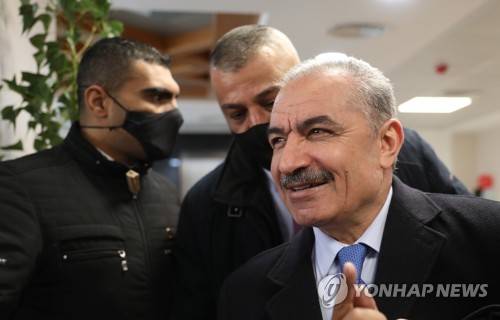 epa08941508 Palestinian Prime Minister Mohammad Shtayyeh (R) arrives for the opening of Al-Hilal Hospital in the west bank city of Nablus, 16 January 2021. Palestinian Prime Minister Mohammad Shtayyeh attend the opening of a new COVID-19 Hospital in Nablus City. EPA/ALAA BADARNEH