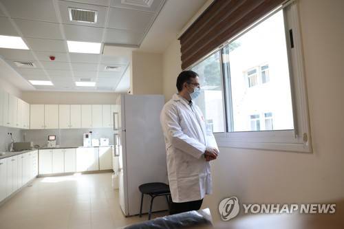 epa08941515 A Medical staff wearing a face mask looks from a window inside a newly opened Hospital in the west bank city of Nablus, 16 January 2021. Palestinian Prime Minister Mohammad Shtayyeh attend the opening of a new COVID-19 Hospital in Nablus City. EPA/ALAA BADARNEH