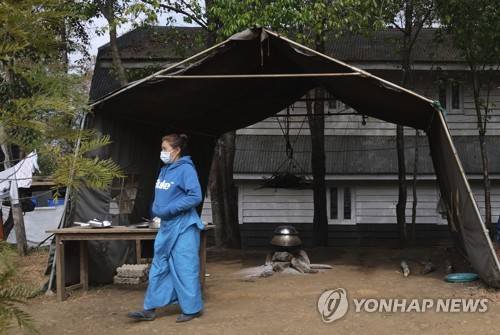 A Tangkhul Naga girl leaves a temporary kitchen at the COVID Care Center set up for Ukhrul district in the northeastern Indian state of Manipur, Saturday, Jan. 16, 2021. India started inoculating health workers Saturday in what is likely the world's largest COVID-19 vaccination campaign, joining the ranks of wealthier nations where the effort is already well underway. Nagas are an indigenous people living in several northeastern Indian states and across the border in Myanmar. (AP Photo/Yirmiyan Arthur)