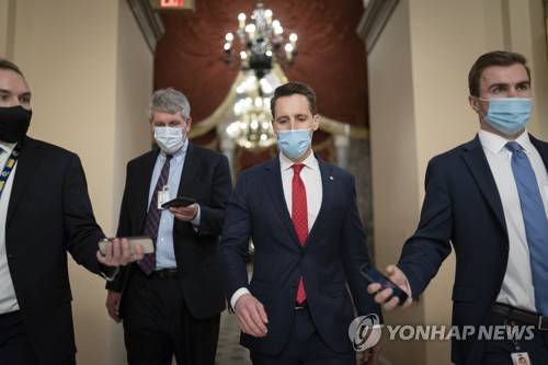 FILE - In this Jan. 6, 2021, file photo after violent protesters loyal to President Donald Trump stormed the U.S. Capitol today, Sen. Josh Hawley, R-Mo., walks to the House chamber to challenge the results of the presidential election in Pennsylvania during the joint session of the House and Senate to count the Electoral College votes cast in November's election, at the Capitol in Washington. (AP Photo/J. Scott Applewhite, File)