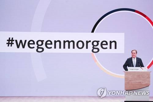 epa08941759 New chairman of the Christian Democratic Union of Germany (CDU) party, Prime Minister of North Rhine-Westphalia Armin Laschet speaks during a CDU party virtual party congress in Berlin, Germany, 16 January 2021. The CDU party congress takes place on 15 and 16 January in digital format. EPA/CHRISTIAN MARQUARDT / POOL POOL
