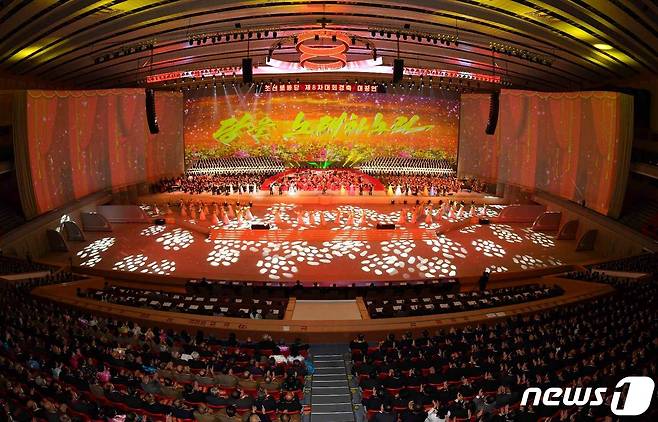 (평양 노동신문=뉴스1) = 북한 노동당 기관지 노동신문은 지난 15일 제8차 당 대회 특별손님과 방청자, 열병식 참가자들이 경축 공연 '당을 노래하노라'를 관람했다고 전했다. 신문은 "당 제8차 대회를 경축하여 평양체육관에서 막을 올린 대공연 '당을 노래하노라'가 계속 진행되고 있다"면서 "당과 정부, 군부에서 오랜 기간 사업하여온 김영남·최영림·양형섭·김기남·최태복·김경옥·리용무 동지를 비롯한 노간부들이 특별석에 자리 잡았다"라고 보도했다.