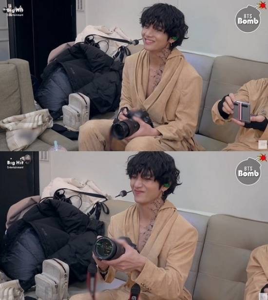 평소 사진 찍는 것을 좋아해 '사진전을 열어줬으면 하는 아이돌'에서도 1등을 할 만큼 특유의 감성이 넘치는 뷔. 그는 카메라 잡는 모습도 전문 사진작가의 모습처럼 보여 팬들을 설레게 했다.