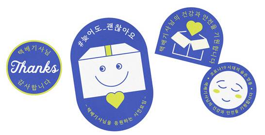 ‘택배기사님을 응원하는 시민모임’(시민모임)은 택배노동자 과로사 해결을 위한 시민행동 방안으로 ‘#늦어도_괜찮아요 : 스티커 캠페인’을 시작했다고 17일 밝혔다. 이 캠페인은 택배노동자들을 응원하기 위해 ‘#늦어도_괜찮아요’ ‘#택배기사님_감사합니다’ 등의 문구가 적힌 스티커와 종이테이프를 집 현관이나 택배 상자 등에 붙이는 방식으로 진행된다.