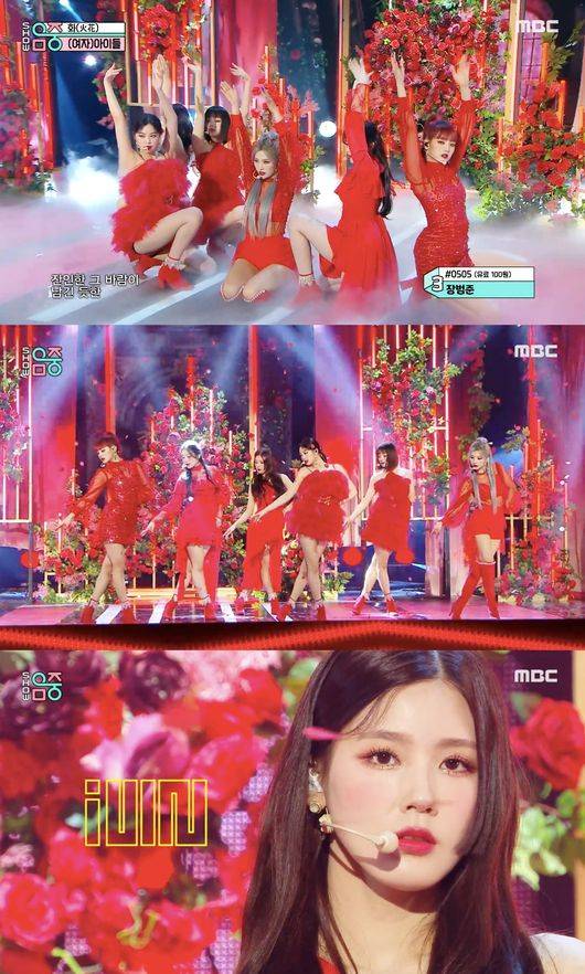 아이들은 지난 16일 방송된 MBC '쇼! 음악중심'에서 미니 4집 'I burn'(아이 번)의 타이틀곡 '화(火花)' 무대를 선보였다.