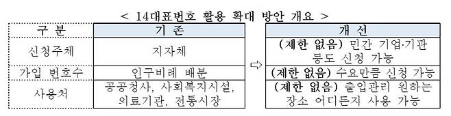 코로나19 출입명부용 14대표번호를 이용하고자 하는 기업 등은 통신사에 신청하면 된다. 원하는 경우 기업·기관의 대표전화번호로도 활용할 수 있다.