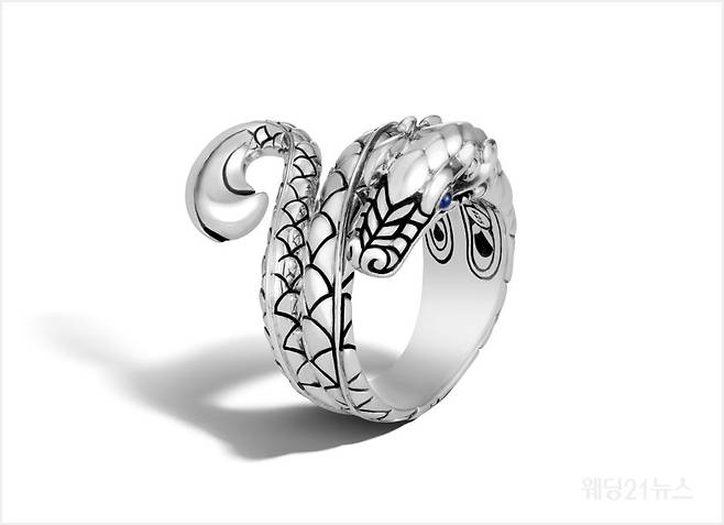 럭셔리 아티산 쥬얼리 브랜드, 존 하디 (John Hardy)에서 레전드 나가 실버 링 위드 블루 사파이어 아이즈를 선보인다.