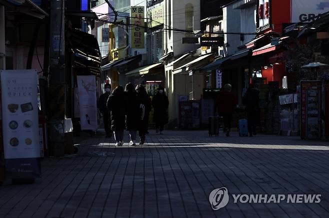 (서울=연합뉴스) 홍해인 기자 = 17일 서울 마포구 홍대거리에 시민들이 오가고 있다.