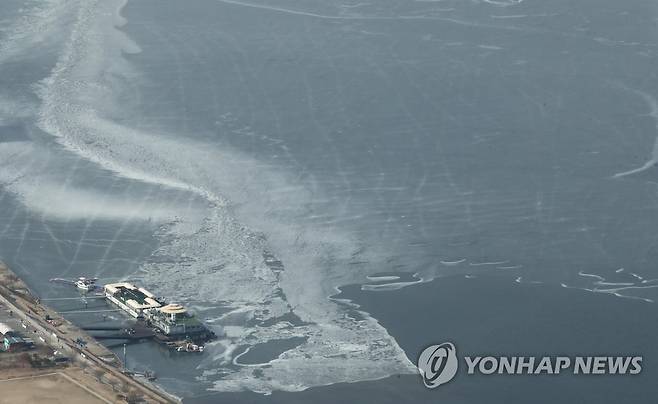 (서울=연합뉴스) 이재희 기자 = 서울 낮기온이 영하권에 머문 17일 서울 송파구 한강 잠실유람선터미널 일대에 얼음이 얼어 있다. 2021.1.17