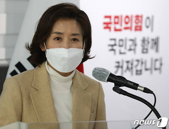 (서울=뉴스1) 신웅수 기자 = 서울시장 출마를 선언한 나경원 전 의원이 17일 오후 서울 여의도 국민의힘 중앙당사에서 정책공약을 발표하고 있다.