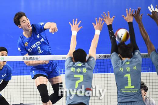 [마이데일리 = 천안 곽경훈 기자] 한국전력 박철우가 17일 오후 충청남도 천안시 천안유관순체육관에서 진행된 '2020-2021 도드람 V-리그' 현대캐피탈-한국전력의 경기에서 공격을 시도하고 있다.- ⓒ마이데일리(www.mydaily.co.kr). 무단전재&재배포 금지 -