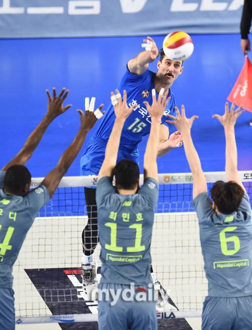 [마이데일리 = 천안 곽경훈 기자] 한국전력 러셀이 17일 오후 충청남도 천안시 천안유관순체육관에서 진행된 '2020-2021 도드람 V-리그' 현대캐피탈-한국전력의 경기에서 공격을 시도하고 있다.- ⓒ마이데일리(www.mydaily.co.kr). 무단전재&재배포 금지 -