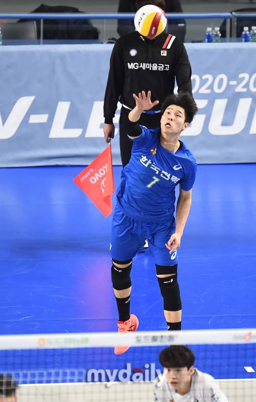[마이데일리 = 천안 곽경훈 기자] 한국전력 이시몬이 17일 오후 충청남도 천안시 천안유관순체육관에서 진행된 '2020-2021 도드람 V-리그' 현대캐피탈-한국전력의 경기에서 서브를 넣고 있다.- ⓒ마이데일리(www.mydaily.co.kr). 무단전재&재배포 금지 -