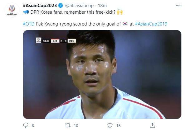 AFC는 북한과 레바논의 경기에서 나온 박광룡의 골 장면을 보여주면서 "북한 팬들, 이 프리킥을 기억하는?"라며 "박광룡의 득점은 아시안컵2019에서 OO의 유일한 골이었다"고 설명했다.