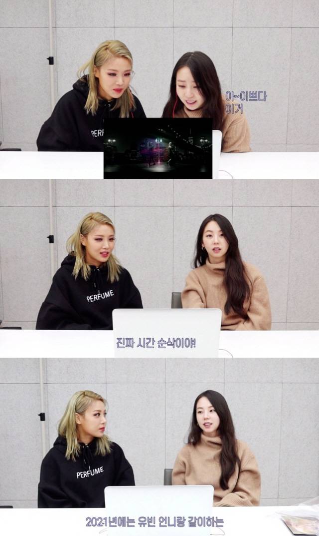 유빈은 지난 16일 자신의 공식 유튜브 채널을 통해 신곡 ‘향수(PERFUME)’의 뮤직비디오 리액션 영상을 공개했다. 이 영상에서 유빈은 원더걸스 멤버였던 배우 안소희와 함께 신곡 ‘향수(PERFUME)’ 뮤직비디오를 감상하며 이야기를 나눴다.