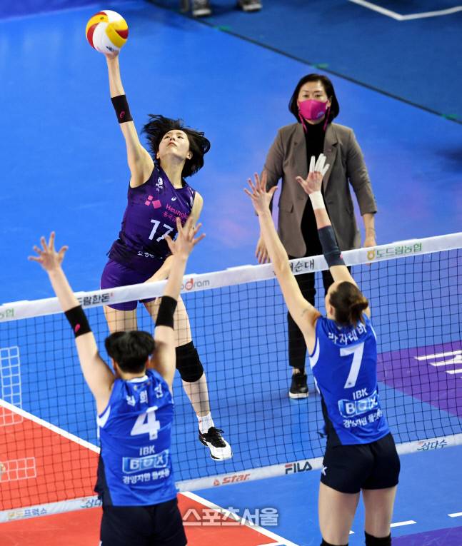 흥국생명 이재영이 17일 화성실내체육관에서 열린 2020-2021 V리그 여자부 IBK기업은행과 흥국생명의 경기에서 스파이크를 날리고 있다.