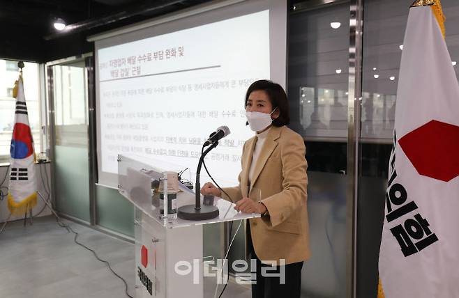 [이데일리 노진환 기자] 서울시장 보궐선거 출마를 선언한 국민의힘 나경원 전 의원이 17일 서울 영등포구 국민의힘중앙당사에서 제1차 정책발표 회견을 열고 소상공인, 자영업자 지원 및 경영 활성화 방안을 발표하고 있다.